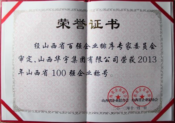 華宇集團(tuán)獲2013山西百?gòu)?qiáng)企業(yè)稱號(hào)
