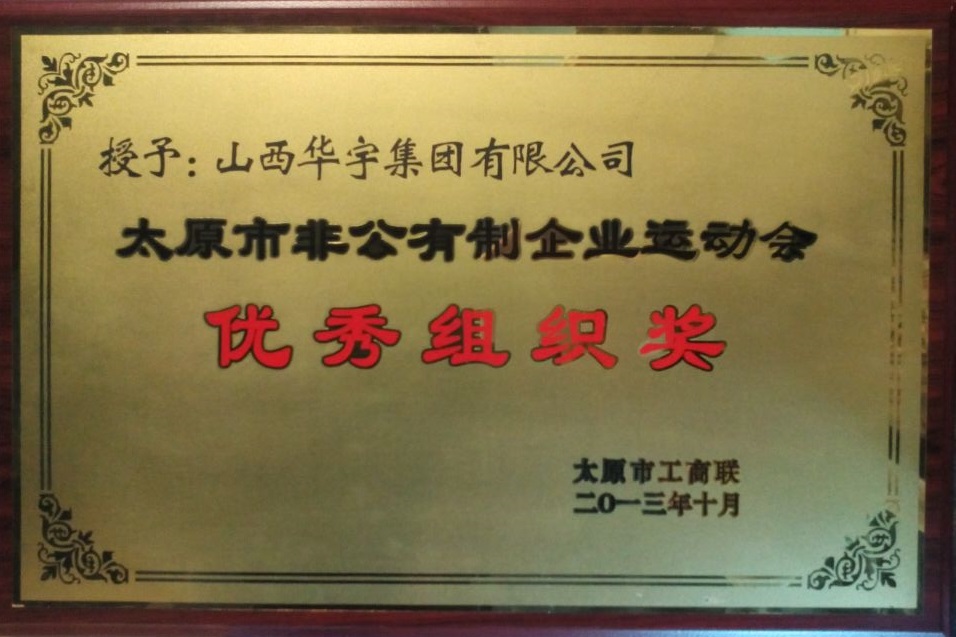 日前,太原市工商聯(lián)召開(kāi)工作會(huì)議,對(duì)參加太原市首屆非公有制企業(yè)運(yùn)動(dòng)會(huì)的單位和個(gè)人進(jìn)行表彰。山西華宇集團(tuán)有限公司榮獲太原市首屆非公有制企業(yè)運(yùn)動(dòng)會(huì)“優(yōu)秀組織獎(jiǎng)”。