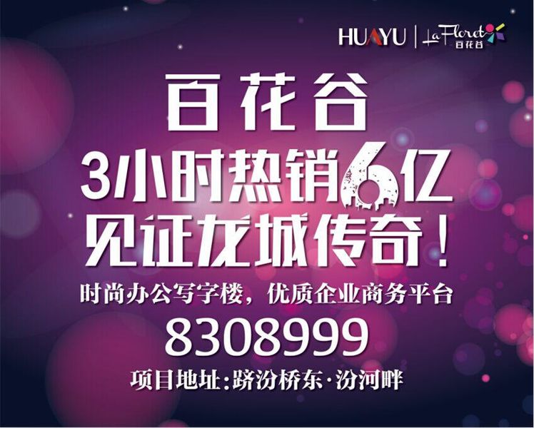 6月28日,華宇百花谷寫字樓逆市熱銷,實現(xiàn)3小時6個億的傳奇業(yè)績,再創(chuàng)龍城新標桿。今天,25年底蘊的華宇集團精雕細琢的百花谷(La Flet)鼎立太原,項目整體由4棟高層以及商業(yè)裙樓組成,由一棟34層甲級超5A寫字樓、一棟27層時尚辦公寫字樓、一棟27層商務(wù)投資寫字樓、一棟26層的五星級酒店,以及7層的商業(yè)裙樓組成。我們可以驕傲的說“太原有百花谷”,百花谷將以她的獨有價值定義“新型城市綜合體”。