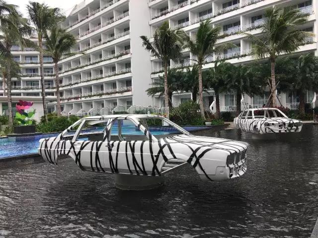 這些裝置或雕塑散落在三亞華宇酒店的四處,如沙灘上的“眺望臺”等,與游客產生交流。
