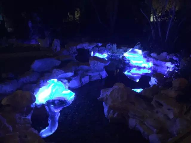 劉佳玉作品現場,在夜晚的水池里,發(fā)光的石頭